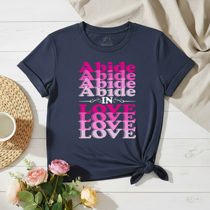 Make a statement of faith and strength with this inspiring graphic tee. Featuring the uplifting message “Abide in Love”, Crafted from a lightweight, ultra-soft cotton blend, this shirt offers a comfortable retail fit that’s perfect for everyday wear. Easy to style and meaningful to wear, it’s a reminder to keep faith at the center—whether you’re out, relaxing at home, or gifting someone special.