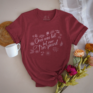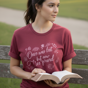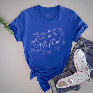 Make a statement of faith and strength with this inspiring graphic tee. Featuring the uplifting message “Once was Lost, but now I'm found”, Crafted from a lightweight, ultra-soft cotton blend, this shirt offers a comfortable retail fit that’s perfect for everyday wear. Easy to style and meaningful to wear, it’s a reminder to keep faith at the center—whether you’re out, relaxing at home, or gifting someone special.