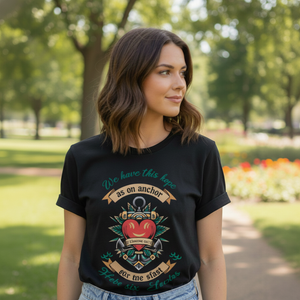 Make a statement of faith and strength with this inspiring graphic tee. Featuring the uplifting message “Hebrews 6:19”, Crafted from a lightweight, ultra-soft cotton blend, this shirt offers a comfortable retail fit that’s perfect for everyday wear. Easy to style and meaningful to wear, it’s a reminder to keep faith at the center—whether you’re out, relaxing at home, or gifting someone special.