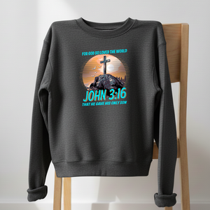 This cozy sweatshirt features typography design with the inspiring message, “JOHN 3_16” Made from soft, comfortable fabric with a relaxed crewneck fit, it’s perfect for everyday wear or layering on cooler days. The eye-catching design adds meaning and style while remaining easy to pair with any casual outfit. Ideal for personal wear or gifting, this sweatshirt is a warm reminder of faith, strength, and perseverance.