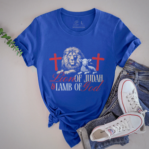 Make a statement of faith and strength with this inspiring graphic tee. Featuring the uplifting message “Lion of Judah & Lamb of God”, Crafted from a lightweight, ultra-soft cotton blend, this shirt offers a comfortable retail fit that’s perfect for everyday wear. Easy to style and meaningful to wear, it’s a reminder to keep faith at the center—whether you’re out, relaxing at home, or gifting someone special.