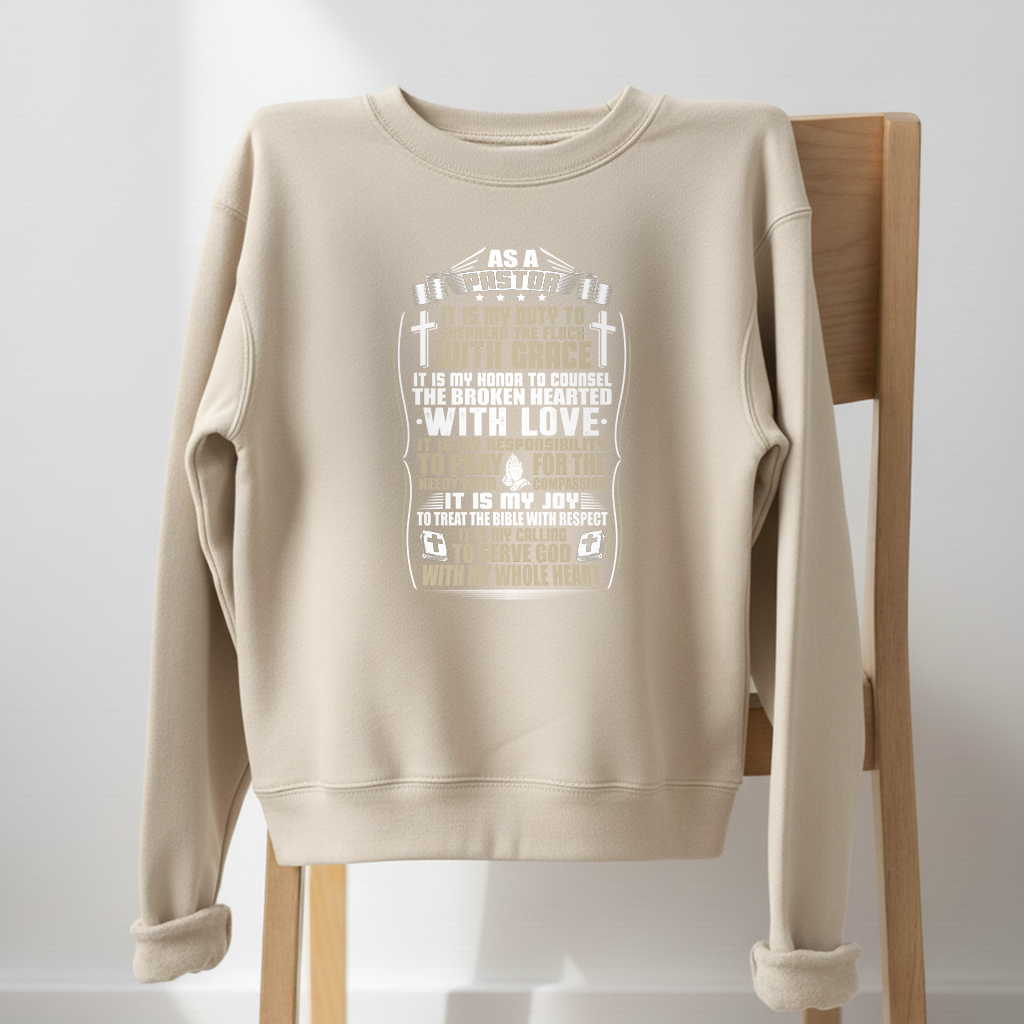 This cozy sweatshirt features typography design with the inspiring message, “Pastor With Love” Made from soft, comfortable fabric with a relaxed crewneck fit, it’s perfect for everyday wear or layering on cooler days. The eye-catching design adds meaning and style while remaining easy to pair with any casual outfit. Ideal for personal wear or gifting, this sweatshirt is a warm reminder of faith, strength, and perseverance.