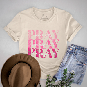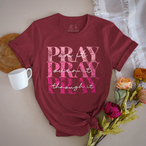 Make a statement of faith and strength with this inspiring graphic tee. Featuring the uplifting message “Pray on it. Pray over it. Pray through it.”, Crafted from a lightweight, ultra-soft cotton blend, this shirt offers a comfortable retail fit that’s perfect for everyday wear. Easy to style and meaningful to wear, it’s a reminder to keep faith at the center—whether you’re out, relaxing at home, or gifting someone special.