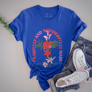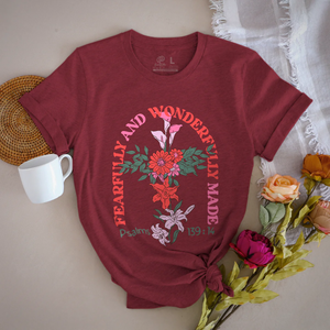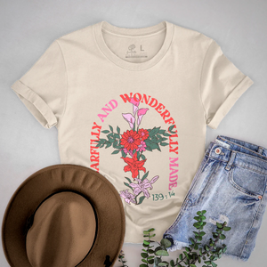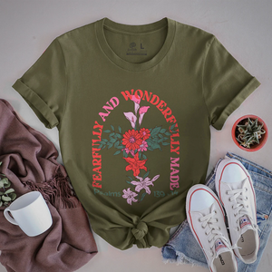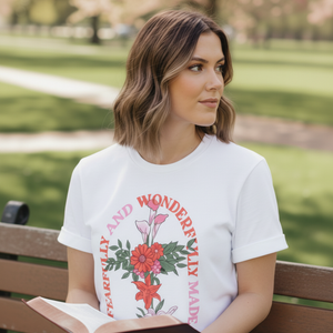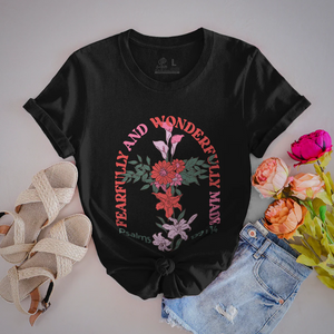 Make a statement of faith and strength with this inspiring graphic tee. Featuring the uplifting message “Psalms 139:14 - Fearfully and Wonderfully made”, Crafted from a lightweight, ultra-soft cotton blend, this shirt offers a comfortable retail fit that’s perfect for everyday wear. Easy to style and meaningful to wear, it’s a reminder to keep faith at the center—whether you’re out, relaxing at home, or gifting someone special.