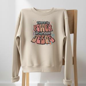This cozy sweatshirt features typography design with the inspiring message, “There is Power in the name Jesus” Made from soft, comfortable fabric with a relaxed crewneck fit, it’s perfect for everyday wear or layering on cooler days. The eye-catching design adds meaning and style while remaining easy to pair with any casual outfit. Ideal for personal wear or gifting, this sweatshirt is a warm reminder of faith, strength, and perseverance.